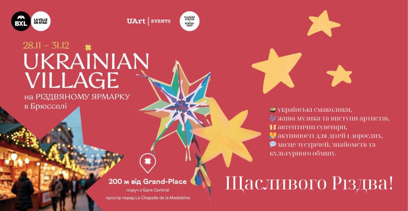 З 28 листопада по 31 грудня у самому серці Брюсселя, біля легендарної Гран-Плас, на вас чекатиме наш теплий, різдвяний, смачний і дуже український простір.